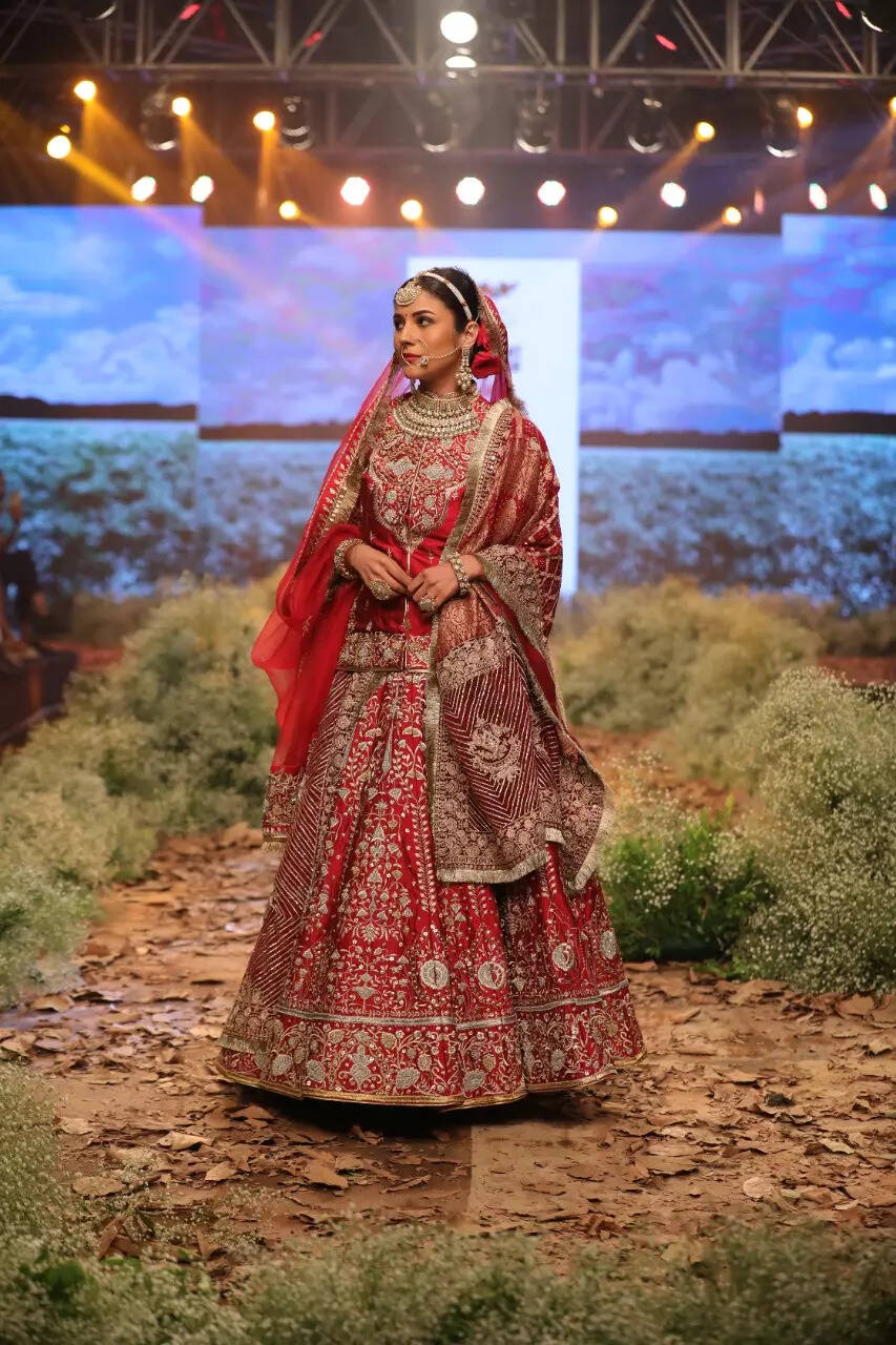 The first edition of Ahmedabad Times Fashion Week came to a close with Delhi-based designer Samant Chauhan presenting the grand finale show. The icing on the cake was actor Shehnaaz Gill, who made her ramp debut for Samant. She left the onlookers spellbound as she turned bride for the designer and wore a red lehenga.