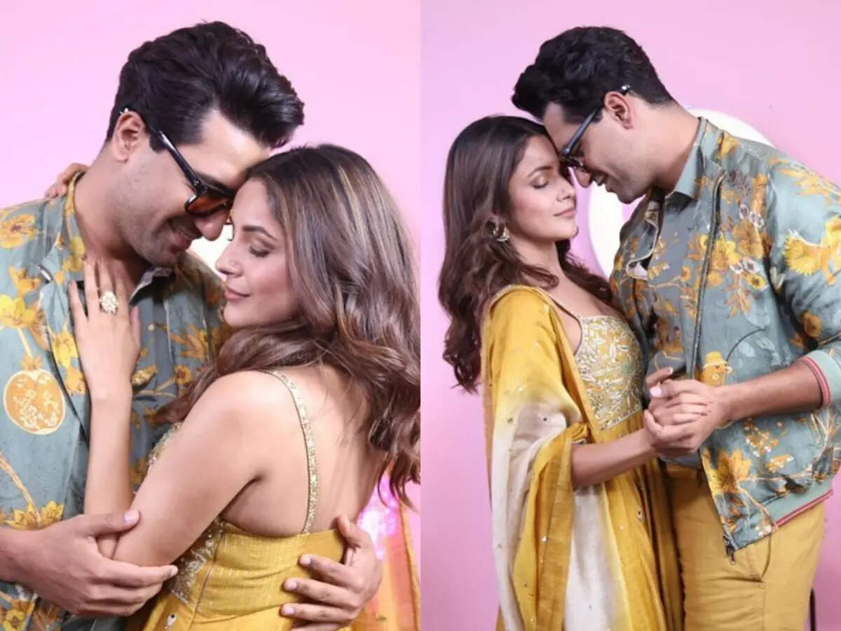 In the photos, Shehnaaz can be seen looking gorgeous in a strappy mustard suit while Vicky is handsome in mustard trousers and a printed blue shirt and jacket. They posed enthusiastically after the chat show.