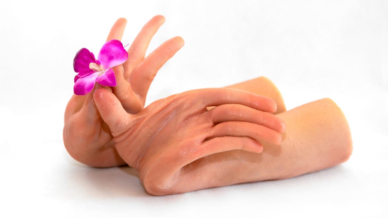 Drawing on prosthetic makeup techniques, Nathan Beard has created hyper-realistic sculptures of his hands and feet, stretched to the limit.