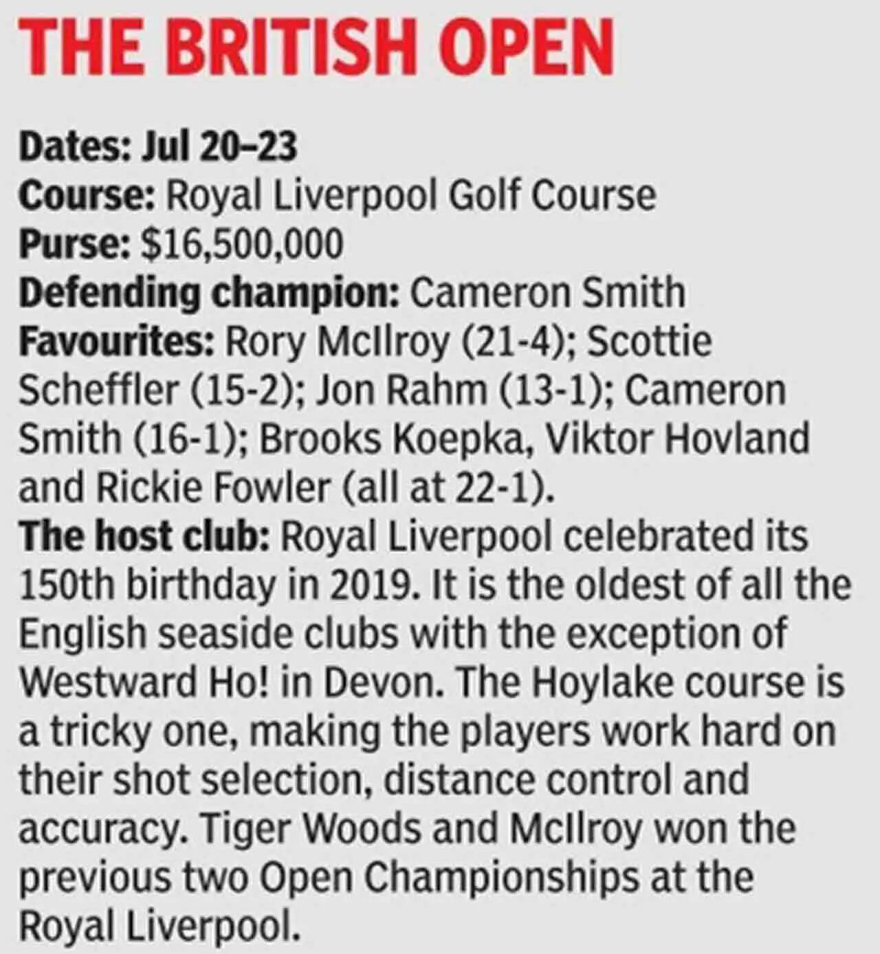 Just like McIlroy, winner at Hoylake, when it last hosted an Open in 2014, Hoylake and Liverpool have been on Sharma's mind for a while now. Sharma took time off the DP World Tour about 3-4 weeks ago and came over to Hoylake to play a few practice rounds. He said, "It was playing very different. I was here for three days. It was really dry and the ball was running forever, especially in downwind it was running like 70 to 80 yards. It's a lot greener now."