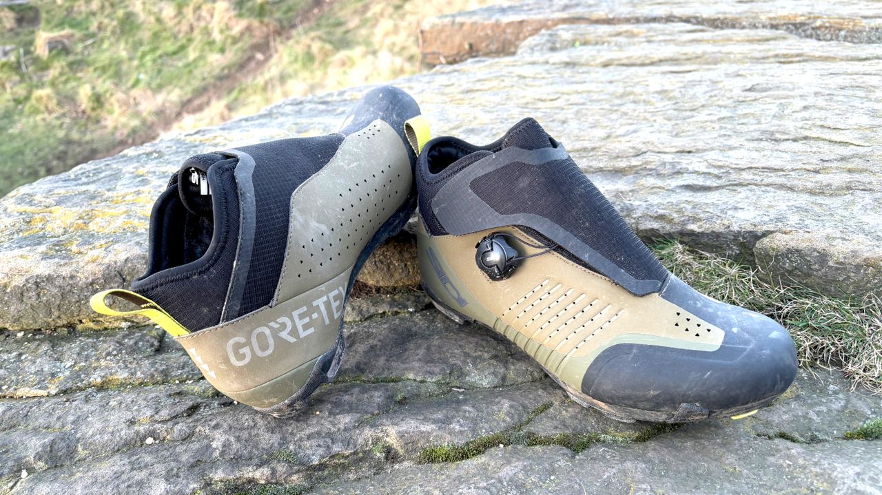 It's the versatility of the Hiemx that I really like, especially for early morning or evening rides, or for when the trails are a bit damp. The extra height on the ankle and the Gore-Tex lining keep most of the water out (Some will always come down your shins in a downpour and into the shoe), and for splashing through puddles and general off-road riding, they keep you warm and drier than you would be in a racier shoe. They feel efficient and not too heavy either, which means they feel much like a regular shoe on the bike, too.