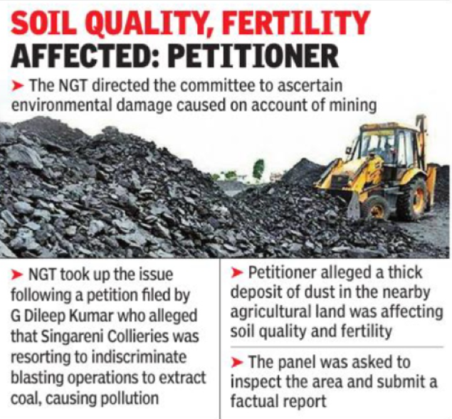 The NGT took up the issue following a petition filed by G Dileep Kumar and others who alleged that Singereni Collieries was resorting to indiscriminate blasting operations to extract coal from Tiryani areas, resulting in air, noise and dust pollution.