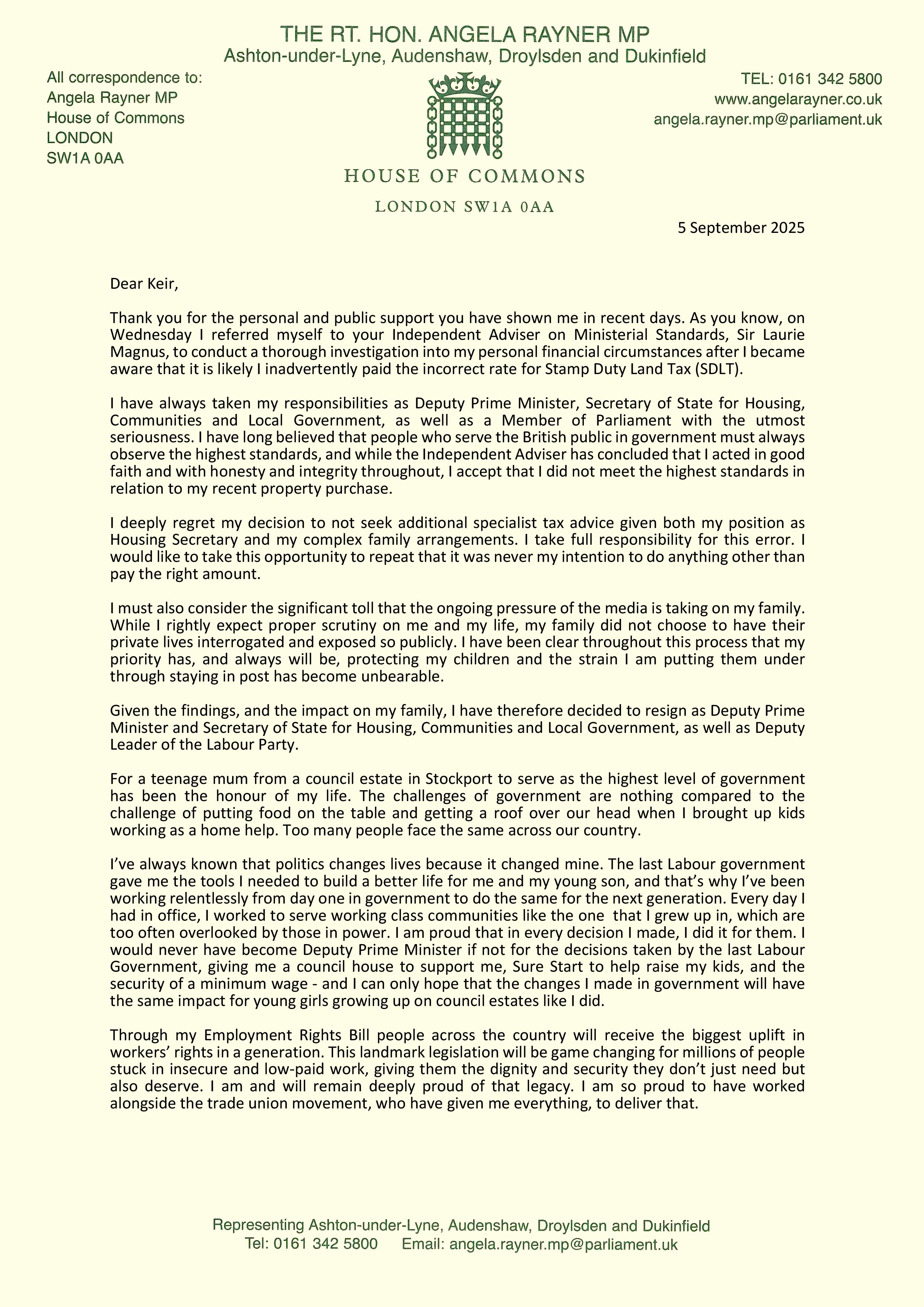 Ms Rayner resigned as deputy prime minister, housing secretary and deputy Labour leader in September after an investigation found she had underpaid stamp duty on her seaside flat in Hove.