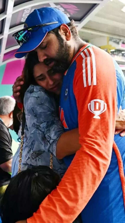 <p>Indian skipper Rohit Sharma with his wife after winning the ICC T20 World Cup 2024.</p>AFP3/10:Virat Kohli
