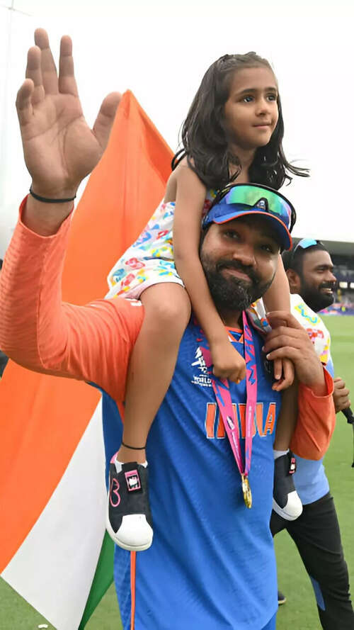 <p>Indian skipper Rohit Sharma with Indian national flag and his daughter after winning the T20 World Cup in Barbados.</p>AFP10/10:Virat Kohli