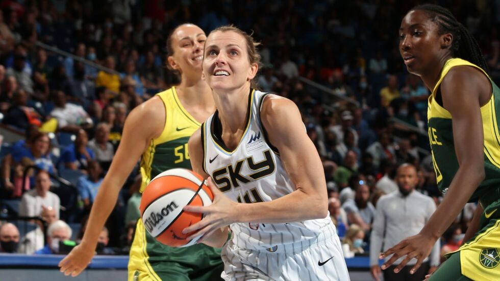 The Storm came out and punched first Wednesday afternoon, but it was a boost provided by Wade’s bench that allowed the Sky to withstand. Dana Evans, Rebekah Gardner and Azurá Stevens came in late in the first quarter and erased a nine-point deficit. When they subbed out halfway through the second, the Sky had a seven-point lead. The Sky never trailed again after taking the lead in the second quarter.