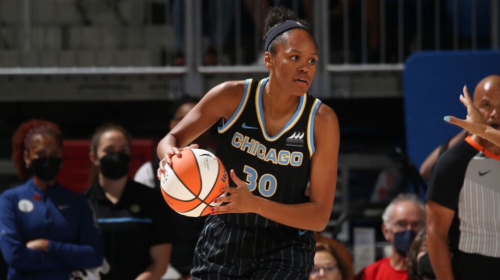 Former Sky star Elena Delle Donne missed the game Friday because of scheduled rest, and her absence was felt. The Mystics’ offensive rating sees a 10.5-point difference when she’s on the court (104.7) versus off (94.2). Hines-Allen led the Mystics with 21 points and grabbed six rebounds. Rookie Shakira Austin added 17 points.