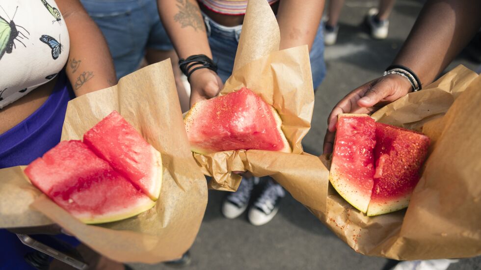 If snow cones and gelato aren’t your preferred way of cooling off, Broken English Taco Pub is selling “big ass watermelon” with Tajín seasoning for $8.