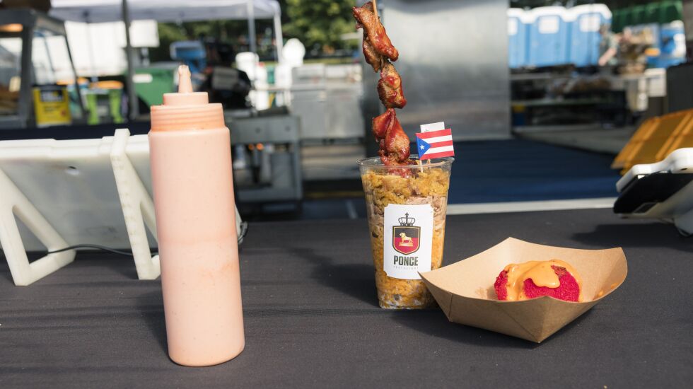 For something more filling, Ponce Restaurant is selling “Puerto Rico in a Cup” for $25. It features arroz con gandules (Puerto Rican rice and pigeon peas), lechón (roasted suckling pig), mofongo (mashed green plantain) and a chicken skewer with guava barbecue sauce.