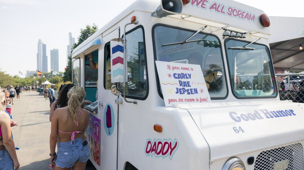 They attract plenty of customers on the hot summer days of Lolla, especially when the crew cheers loudly, rings bells and blows whistles each time a customer leaves a tip.