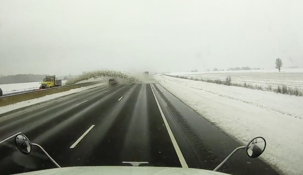 Video of the incident allegedly saw the plough operator direct a huge arc of slush across the highway median and into oncoming traffic over the course of several miles.