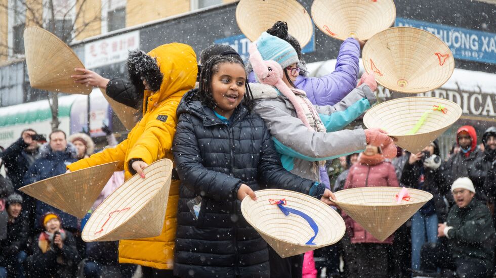 Under a steady stream of snow flurries, hundreds of revelers gathered Saturday afternoon to ring in the Year of the Rabbit at the annual Lunar New Year Parade in the Uptown neighborhood.