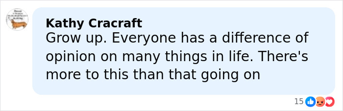“Grow up. Everyone has a difference of opinion on many things in life,” read one comment online