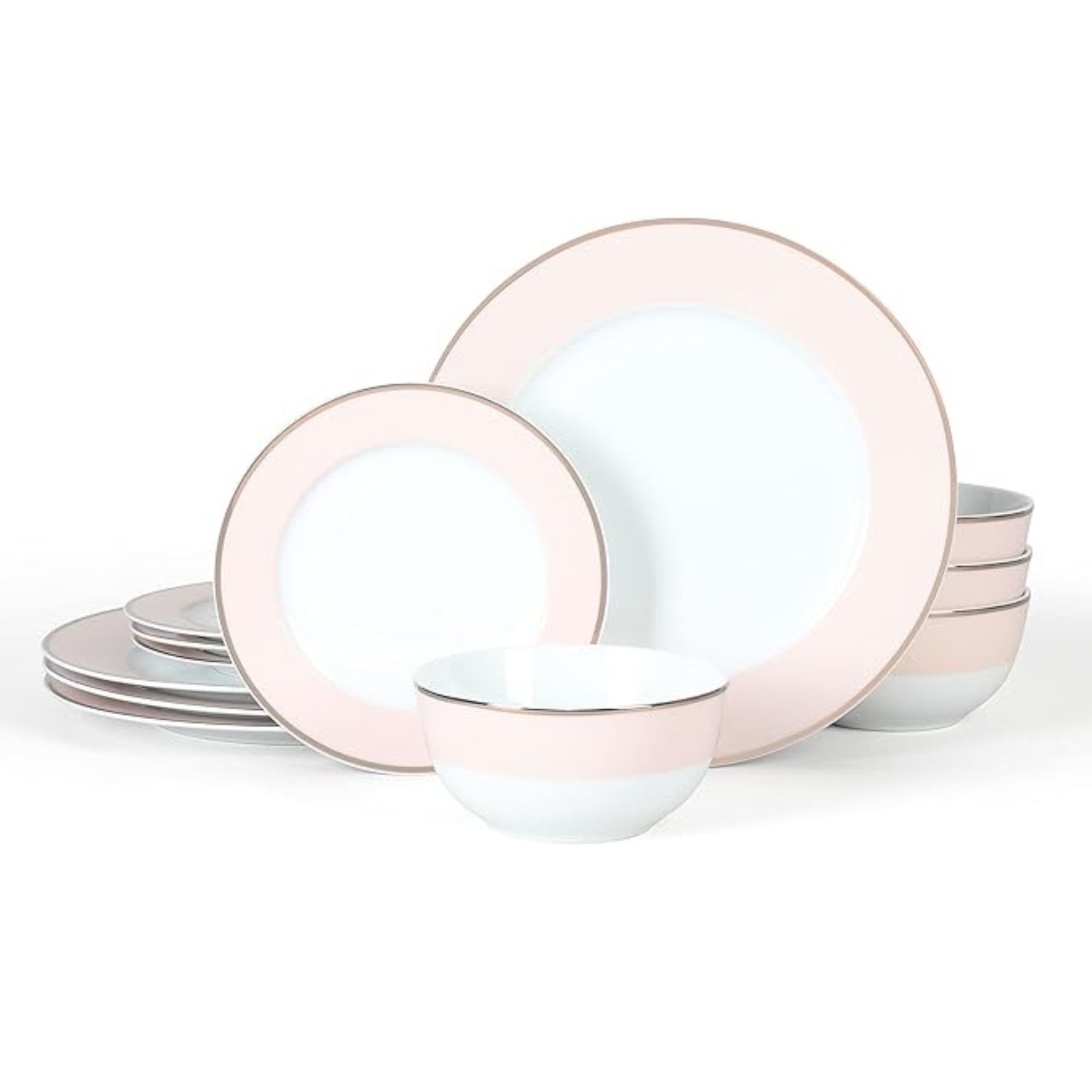 Bring spring to your table early with this floral 12-piece set, which would look fabulous with some pink napkins and silver cutlery.