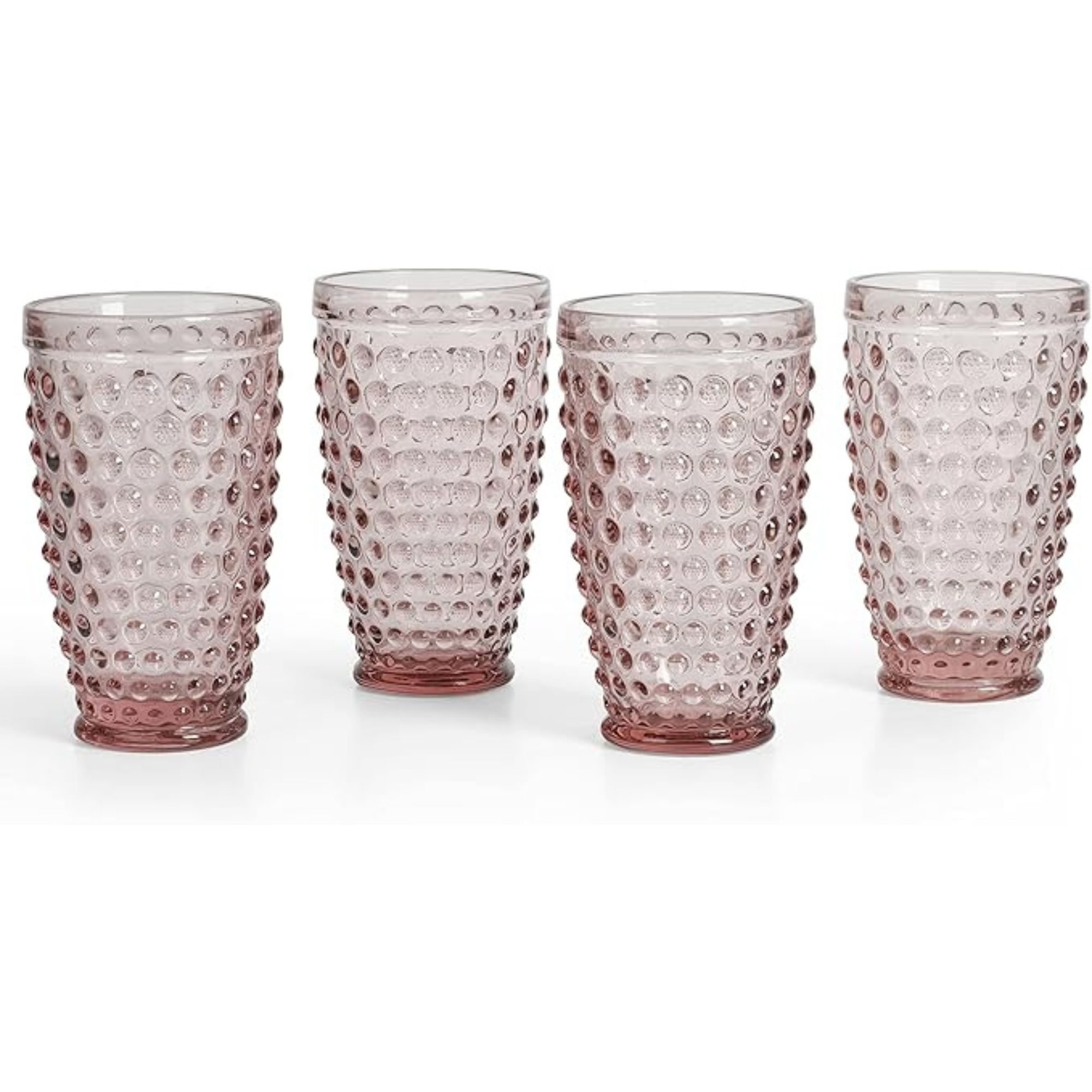 Love the goblets but want something a little more versatile? These pink tumblers come in the same hobnail glass finish and are perfect for everyday beverages.