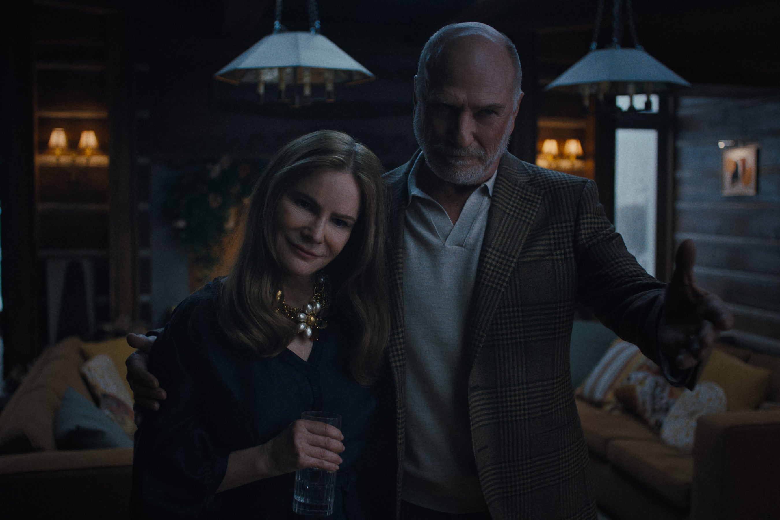Jennifer Jason Leigh as Victoria and Ted Levine as Boris in 'Something Very Bad Is Going To Happen' (Netflix)