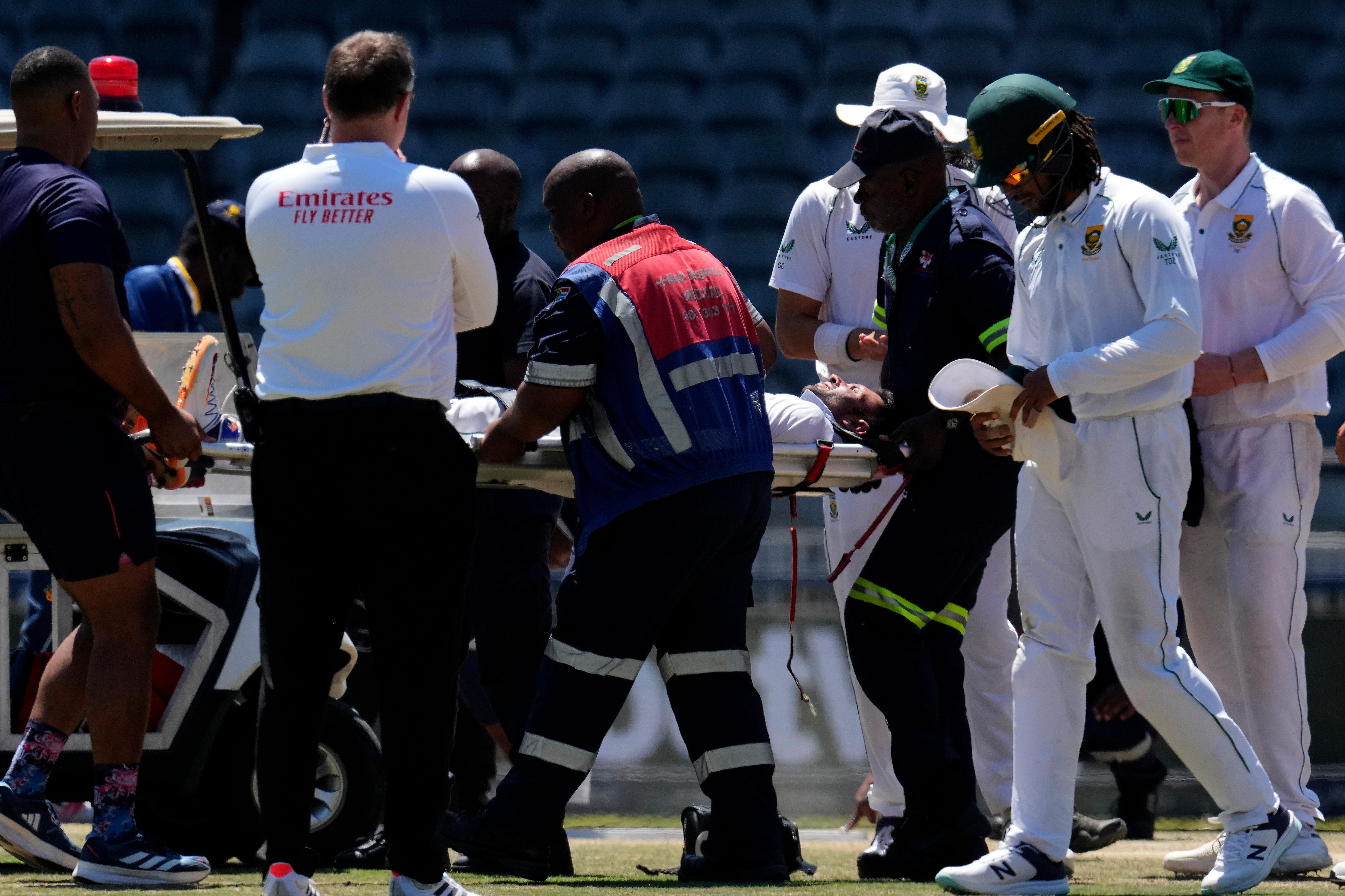 The unusual injury saw Maharaj carried off the Wanderers Stadium field on a stretcher minutes after he got his second wicket in South Africa's series-clinching 284-run second Test win.