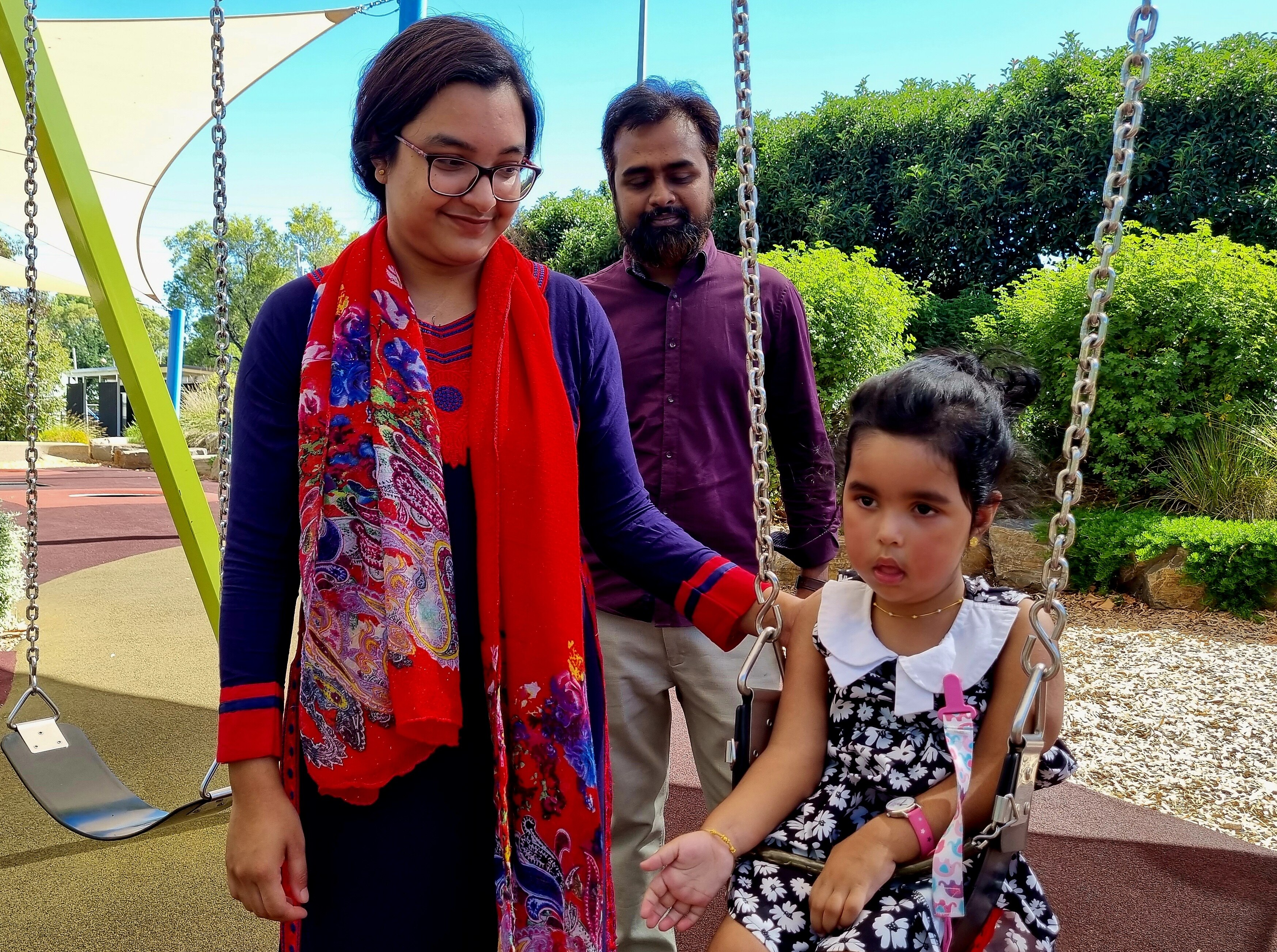 Afnan Oyshe, who came to Australia in 2016, has just started getting support for her three-year-old daughter Tahani, who has the rare muscle weakness condition nemaline myopathy.