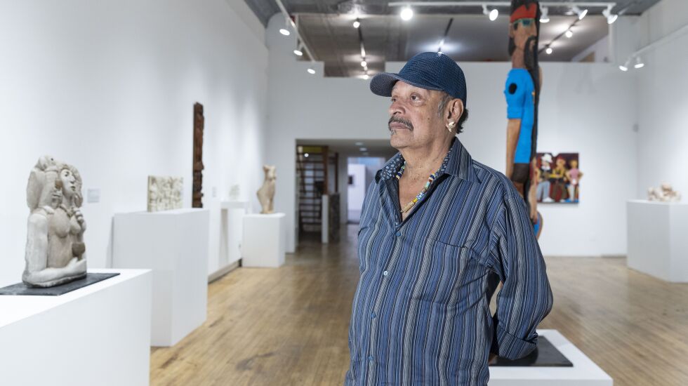 The show, “Roman Villarreal: South Chicago Legacies,” is on view until January at Intuit: The Center for Intuitive and Outsider Art, 756 N. Milwaukee Ave. It spans the self-taught artist’s career, from a wood carving from the ‘70s to a limestone sculpture from 2022. His first major retrospective, it documents the legacy of Mexican immigrant families that moved to South Chicago for work and struggled when industry moved elsewhere.