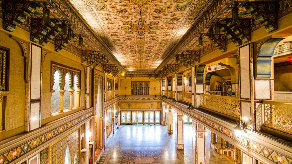 The floor-to-ceiling mosaics and decorative latticework offer glamorous touches. The ceiling in the main lobby looks like a flying carpet with embedded colorful rocks that sparkle, giving people the impression they are on a movie set.