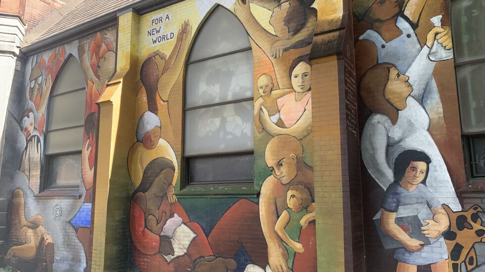 Called “For a New World (Para un Mundo Nuevo),” the mural was painted in 1973 by John Pitman Weber and a colleague on the side of the Holy Covenant United Methodist Church at 925 W. Diversey Parkway.