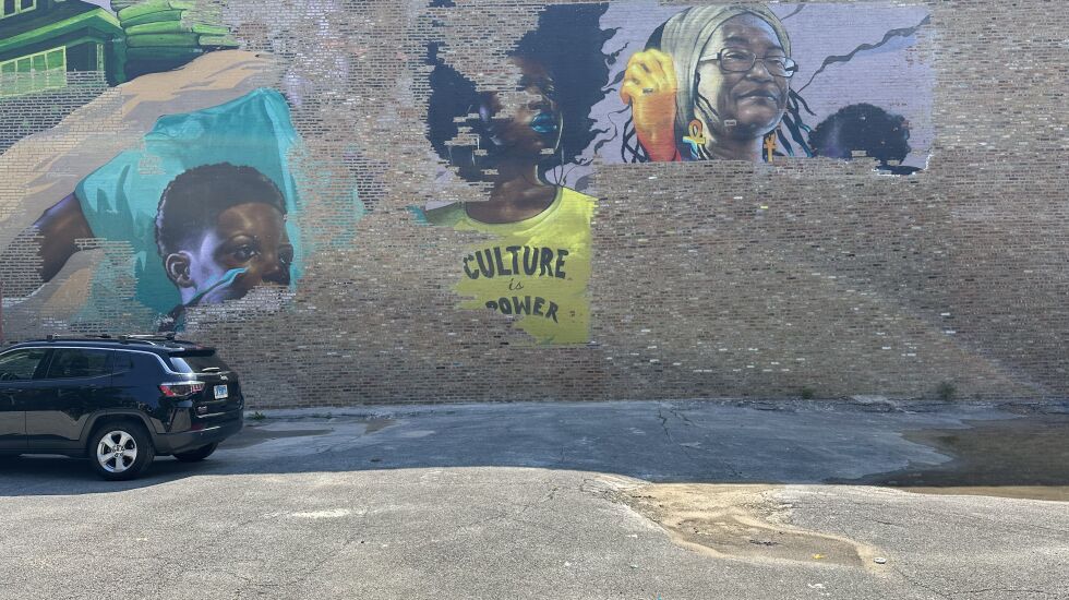 Max Sansing’s “Culture is Power” mural across from the Avalon Regal Theater was recently restored, repainted.