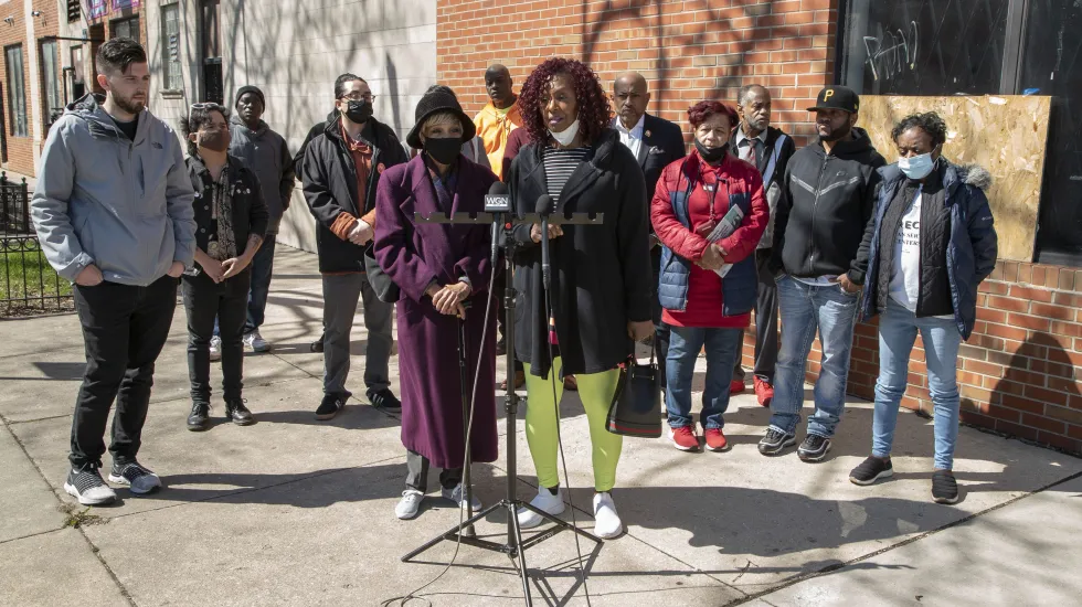 JoLondon Jamerson, who lives in Chatham, is among a group of residents who joined housing activists Thursday in the 7900 block of South Langley Avenue to call for the city to pass an ordinance that would create a pilot program for proactive inspections and a rental registry. They also want federal officials to look into the loans landlords have been able to secure to maintain ownership of the properties in question.