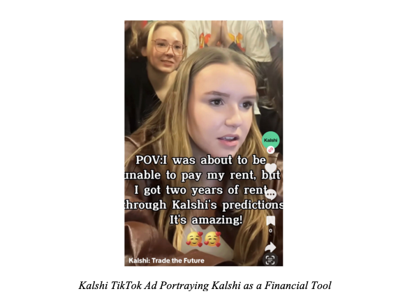 “I was about to be unable to pay my rent, but I got two years of rent through Kalshi’s predictions. It’s amazing!” reads the social media ad’s text overlay, which is an exhibit in a class action lawsuit against the company.