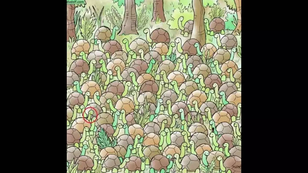 In this picture, numerous tortoises are visible, but a snake is concealed among them. Your task is to locate the snake in under 30 seconds. Ready? Your time starts now! 30... 20... 10, 9, 8, 7, 6, 5, 4, 3, 2, and 1... Stop! Could you spot the snake in this picture? If yes, congratulations! You have sharp eyes. If not, don't worry; we've circled the snake in the picture below: