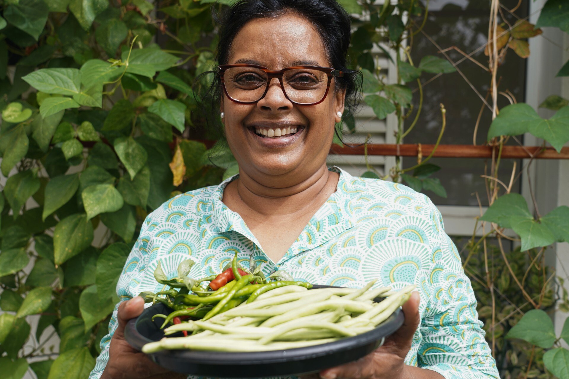 Nanditha Gamage, a small business owner in Colombo, has been growing her own produce for years, but now it's gone from a hobby to a necessity.