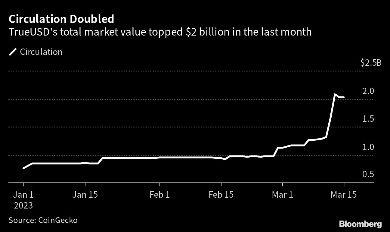 Stablecoins like TrueUSD are digital tokens designed to keep a 1-to-1 value with a less volatile asset like the US dollar, typically by holding large reserves of cash and cash-equivalent assets as collateral. They’re commonly used by traders as a way of transferring funds between exchanges and as a safe haven from price swings, making them a vital cog in the system as some of the crypto sector’s most-traded tokens.