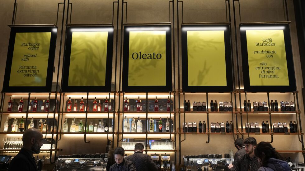 Schultz dreamed up adding olive oil to coffee after visiting an olive oil producer in Sicily. He worked with an in-house coffee drink developer to come up with recipes for the drinks, dubbed “Oleato” — Italian for “oiled” — which were introduced with a Lizzo performance for an invitation-only crowd at the company’s Milan Roastery.