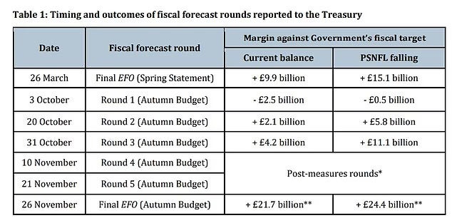 31 October: The OBR told Reeves that she was now sitting on a surplus of some £4.2 billion, as inflation saw tax revenues increase.