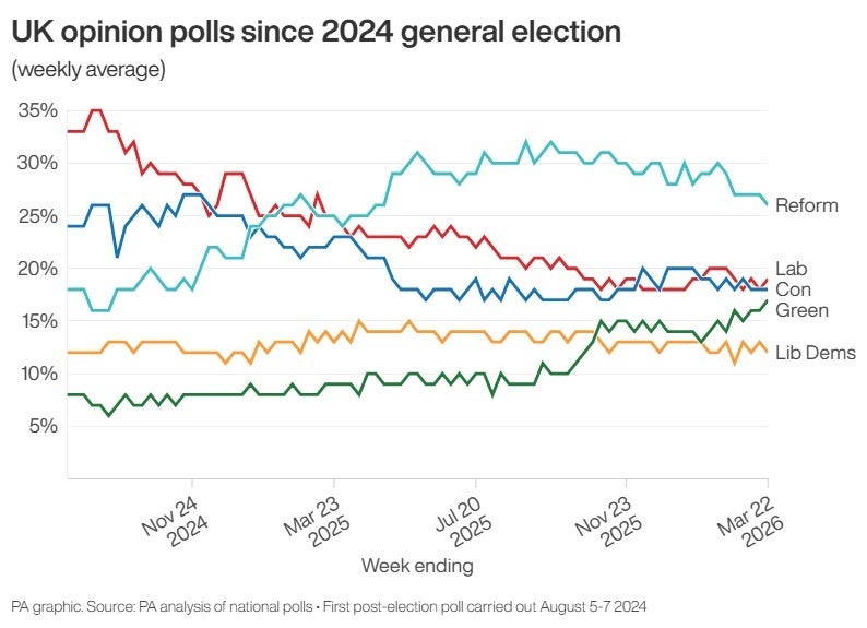Labour approaches the May 7 elections struggling in the polls and facing challenges from both Reform UK to the right and a resurgent Green Party to the left.
