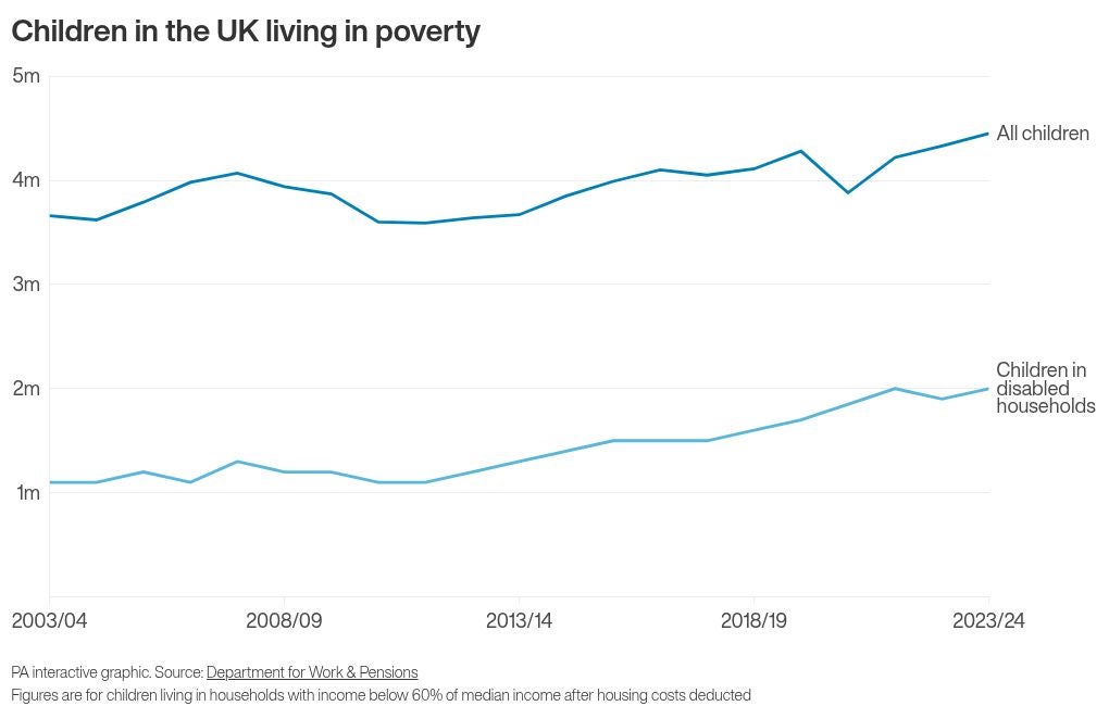 The key move to scrap the two-child benefits limit from April next year – already announced in last week’s Budget – will result in an estimated reduction of child poverty by 450,000 by 2029/30 at a cost of £3 billion.