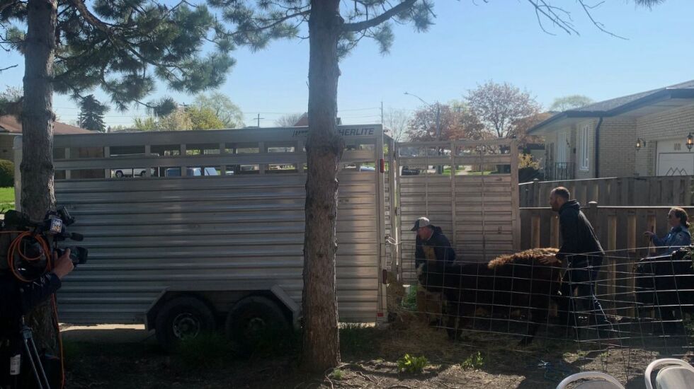 The heifer, along with a pig and some chickens, came from Northridge Preparatory School in Niles, a little more than a mile away.