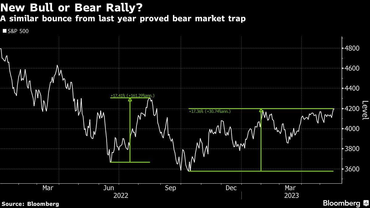 A key question for anyone weighing a gamble on stocks now is whether all the trauma unleashed last year when the Fed jacked up rates did enough damage to sentiment to account for whatever is in store for the economy down the road. And while more than a seven-month rally is needed to prove it did, the case for belief isn’t baseless.