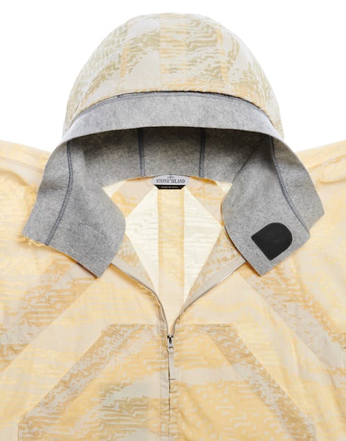 Kimono-style sleeves feature openings in the underarms, and oversized pockets at the front give that convenient hit of storage. There’s also a second internal hood made of polyester felt that can be removed if needed and refastened with frontal Velcro. Stone Island Textile Research’s white badge finishes off the left sleeve and each coat is numbered between 01 to 100.