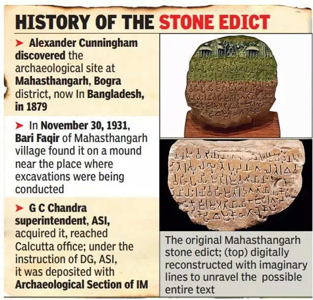 KOLKATA: A recent re-interpretation of a stone tablet measuring around 32 square inches discovered in 1931 at an archaeological site at Mahasthangarh in undivided Bengal, now in Bangladesh's Bogra district, has thrown fresh light on the presence of independent urban centres in the region during the Mauryan dynasty around 2,500 years ago.