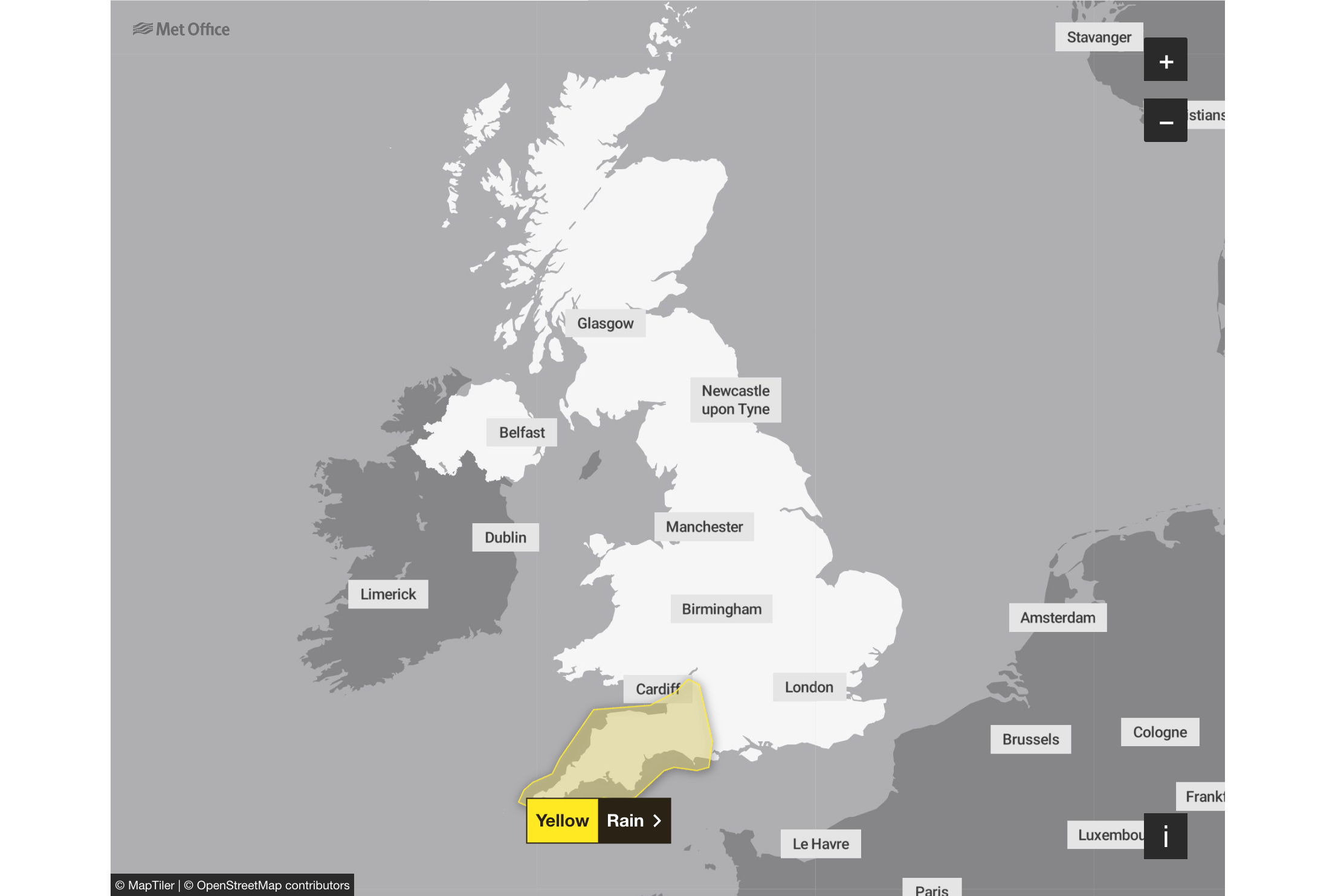 Met Office shares forecast map for Thursday