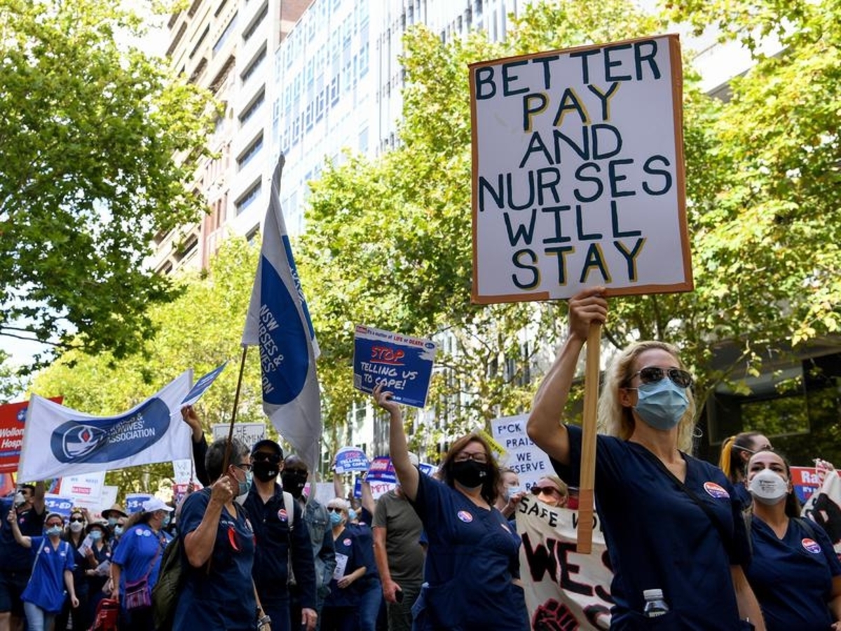 Thousands of NSW public hospital nurses have walked off the job in protest at inadequate staff-to-patient ratios, saying they are at breaking point and stretched too thin to give people the care they deserve.