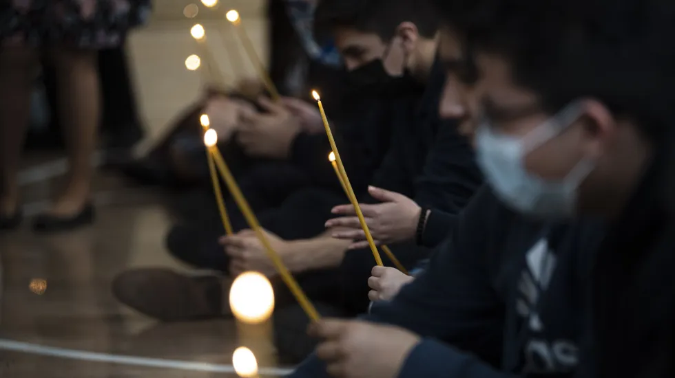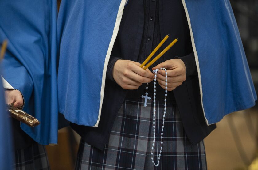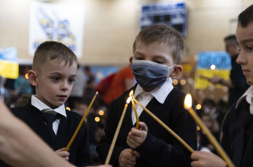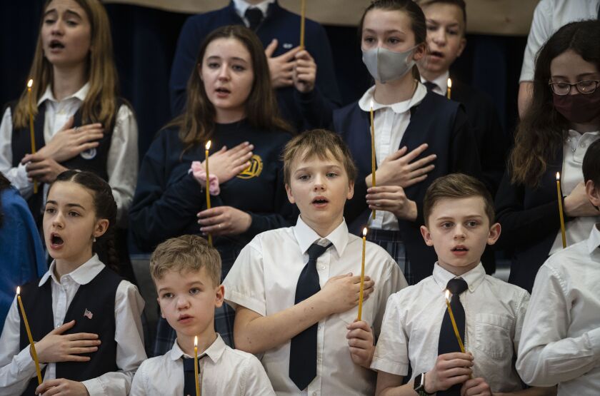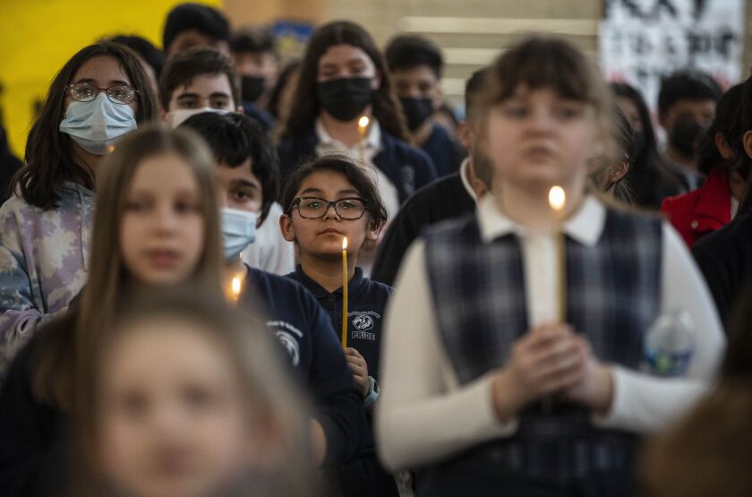 But the student-led event was the largest to date at the school at 2200 W. Rice St. as the student body there was joined by kids from three other schools, St. Pius V, St. Nicholas of Tolentine and St. Mary Star of the Sea. Some 100 students in all passed candles and recited prayers in hopes the Russian invasion will end soon.