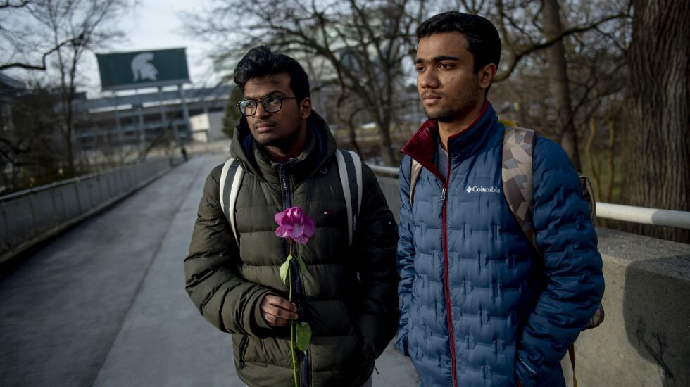 The 50,000-student university’s campus remained relatively quiet on the first day back, with many professors allowing students to attend class virtually. Many students skipped class to attend an afternoon protest at the state Capitol in Lansing to call for gun control legislation.