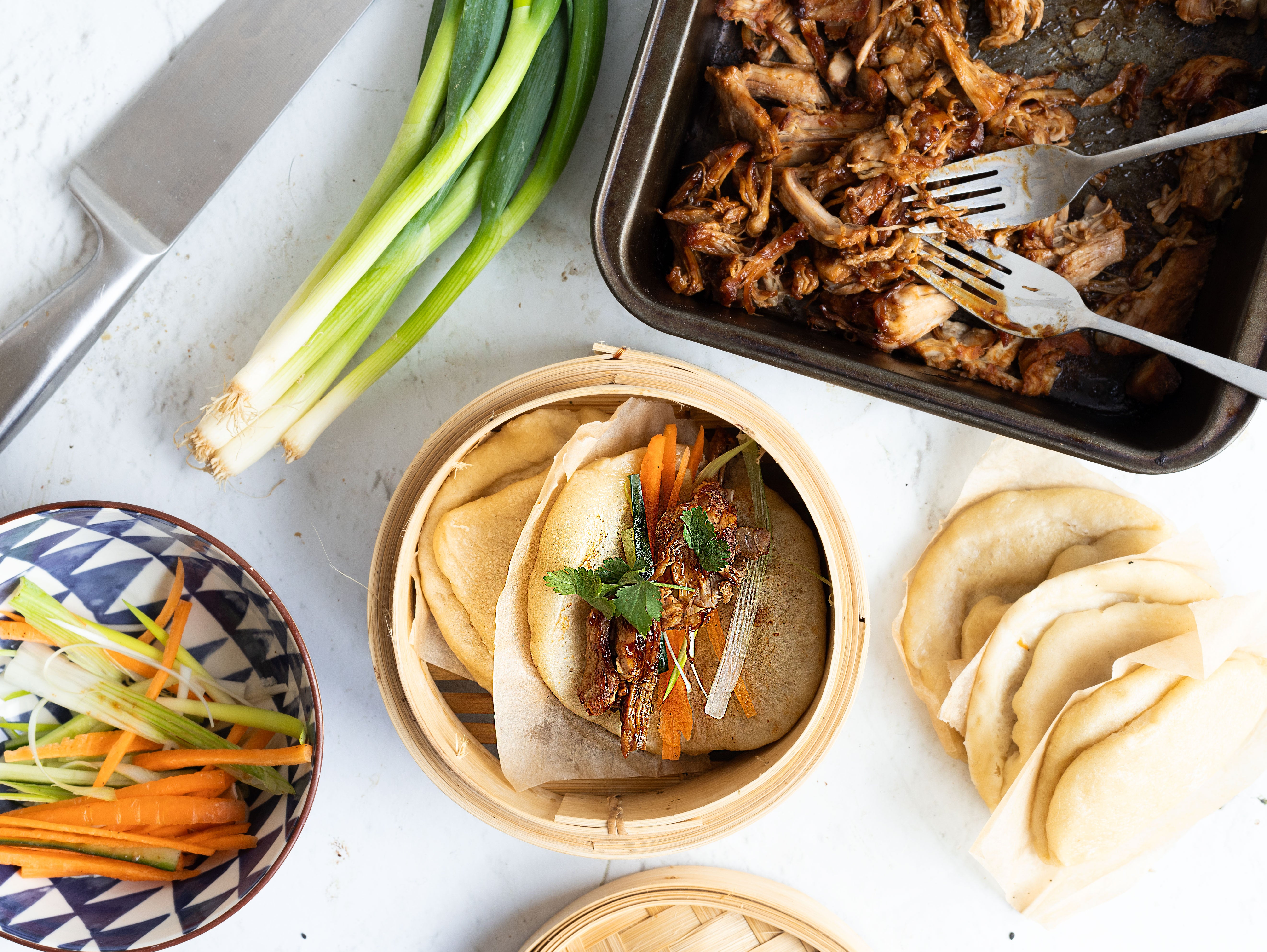 Deliciously sweet, warm and sticky pork. To save time, buy the bao buns from the supermarket.
