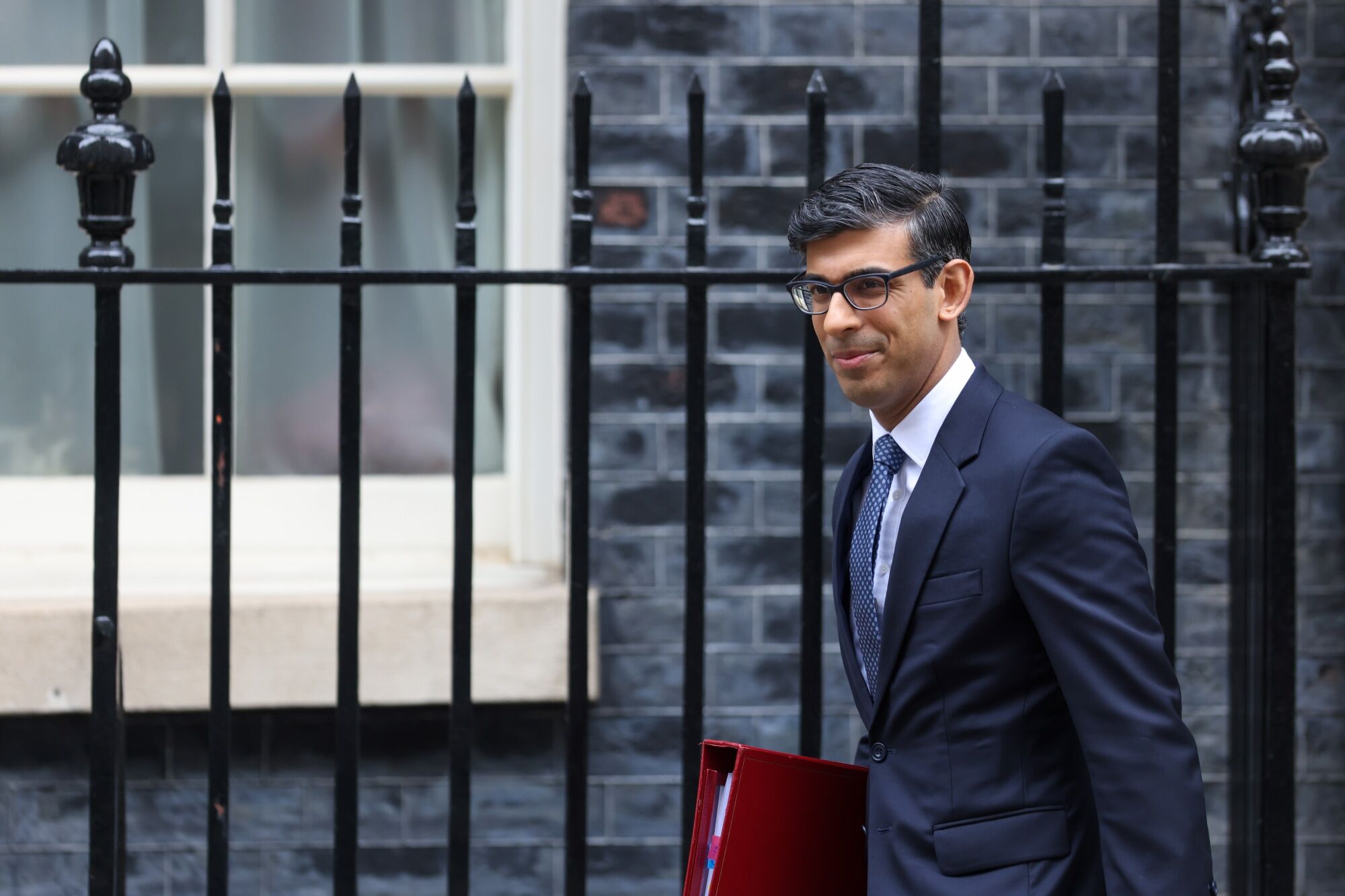 Rishi Sunak, UK prime minister, departs 10 Downing Street in London, UK, on Wednesday, March 15, 2023. UK Chancellor of the Exchequer Jeremy Hunt will pledge to drive economic growth by unblocking business investment in his first budget, in which he will set out tax-and-spend policies for the last full year before the next election. (Bloomberg)