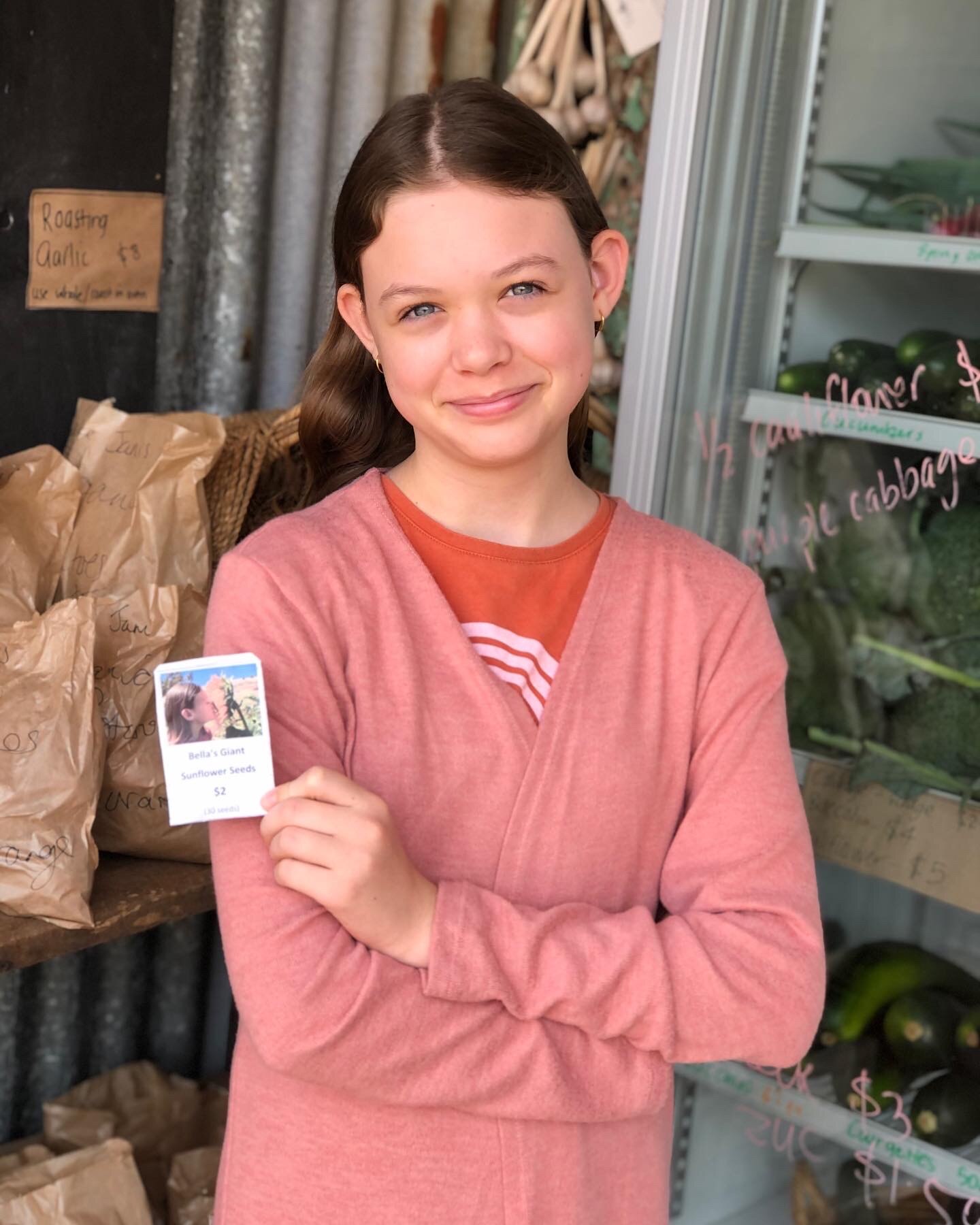 Regenerative farming company Dirty Clean Food purchased 100 packets of Bella's giant sunflower seeds and has gifted them to people who have been isolating due to COVID-19.