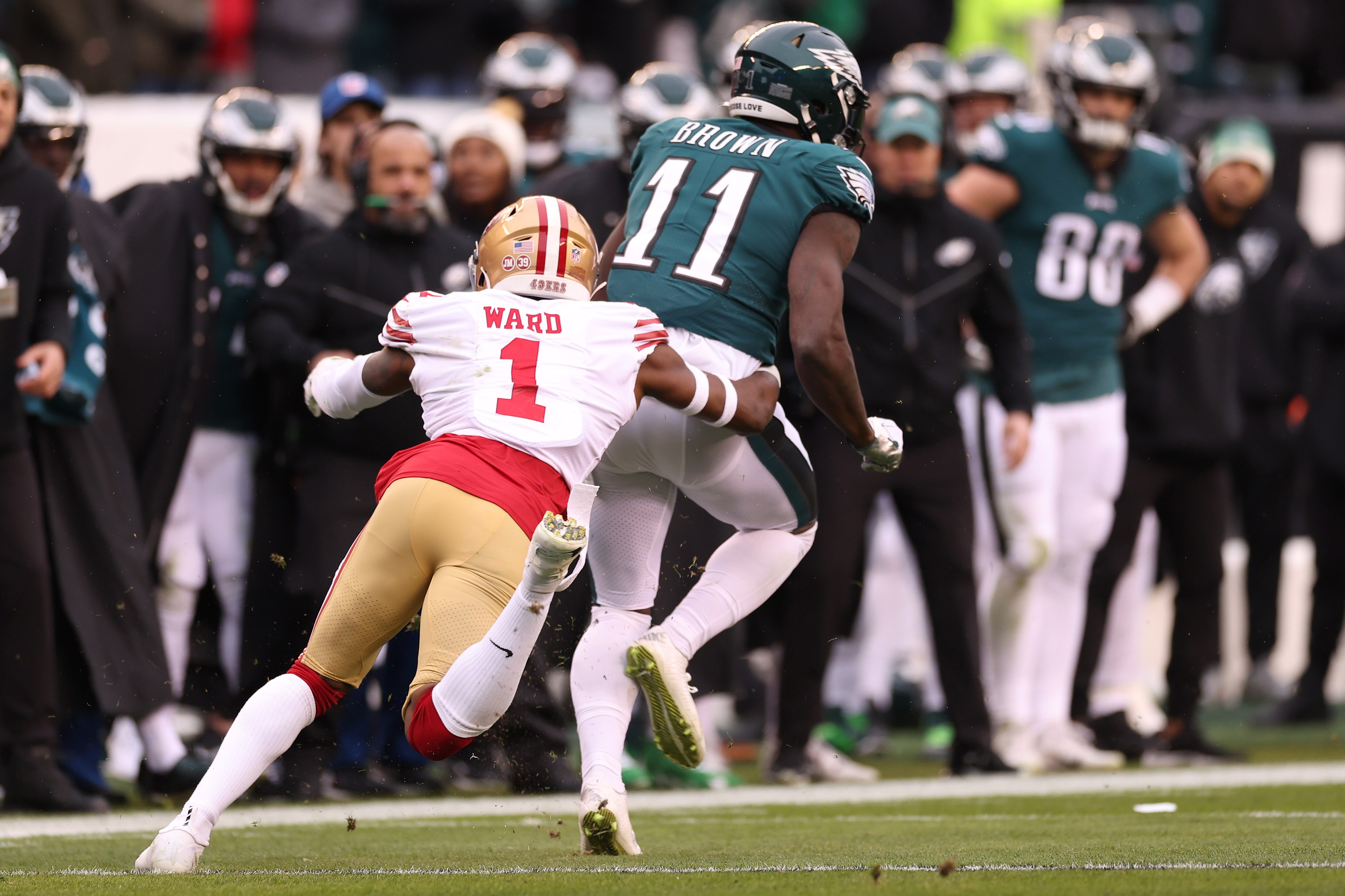 The wide receiving duo of A.J. Brown and DeVonta Smith combined for nearly 2,700 yards and 18 touchdowns in the regular season alone, so they will keep the Kansas City secondary busy.