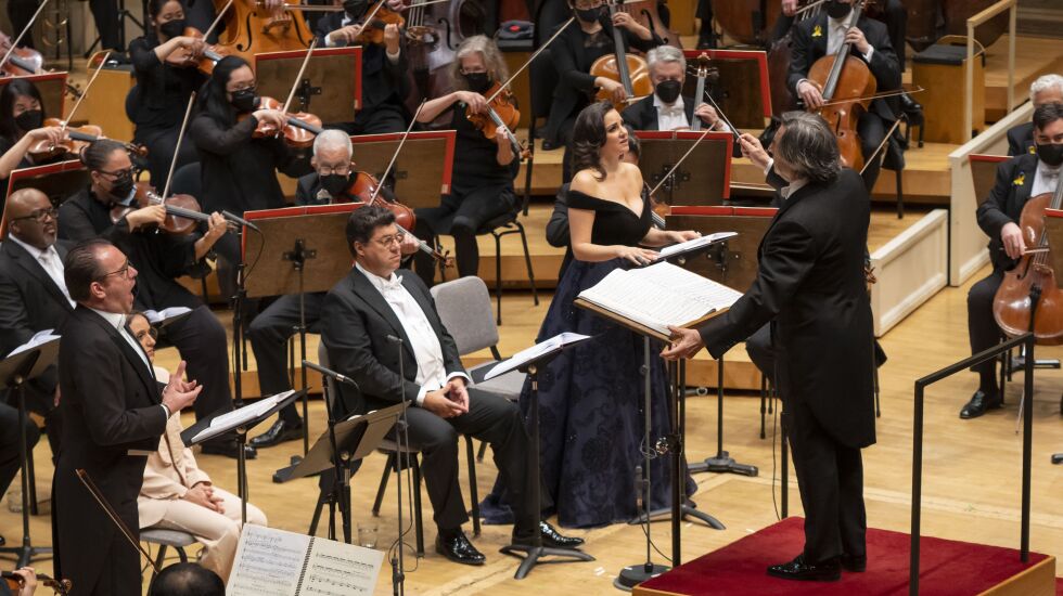 He has previously led four such presentations — “Otello” (2011), “Macbeth” (2013), “Falstaff” (2016) and “Aida” (2019) — and Thursday evening, he added a fifth, “Un ballo in maschera” as the finale of the orchestra’s 2021-22 subscription series.