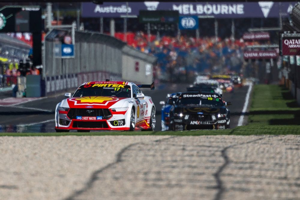 In an action-packed race Kostecki, who was feeling better after falling ill on Thursday, watched as Matt Payne led away from pole position. Kostecki stalked the Grove Racing Ford Mustang for the opening four laps, before the Dick Johnson Racing Mustang found a way through to the lead.