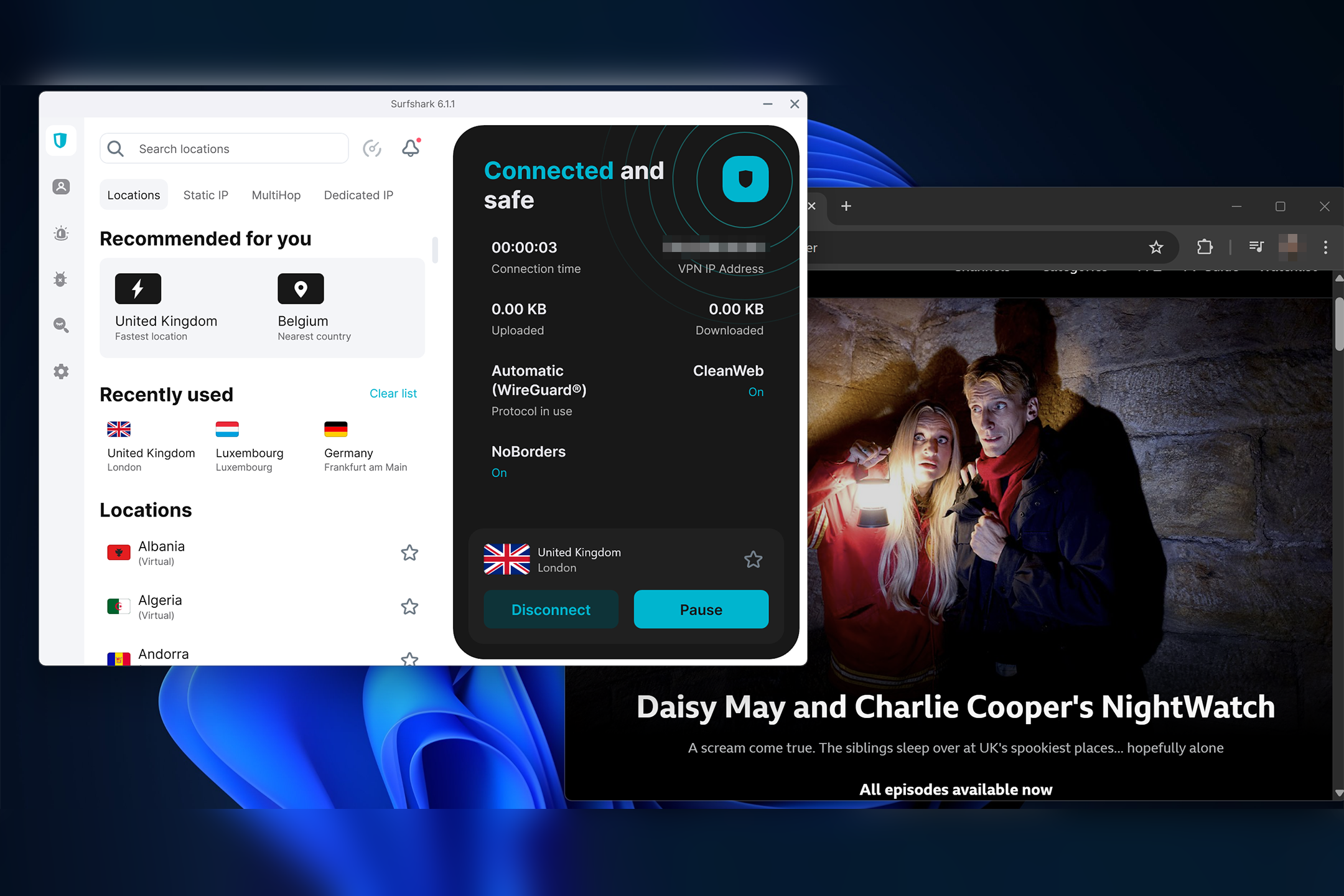 We’ve tested Surfshark VPN several times over the last decade. In our most recent test, we tried it on multiple devices over several weeks, including laptops, smartphones and smart TVs. We measured server speeds and reliability across local and international locations. We then streamed shows on BBC iPlayer, ITVX, Channel 4, Sky Go, Netflix and Disney+ to check how well it handled UK content while connecting to UK servers.